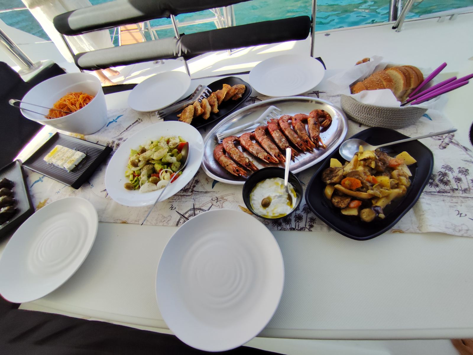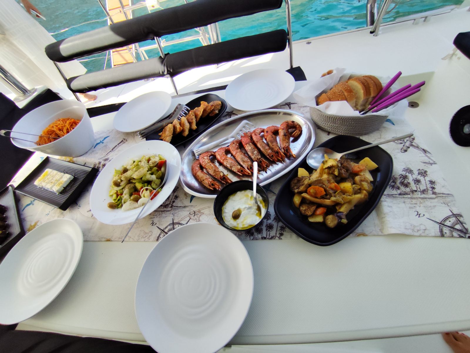 ✓ Greek BBQ on board (chicken, shrimps, Greek salad, tzatziki)