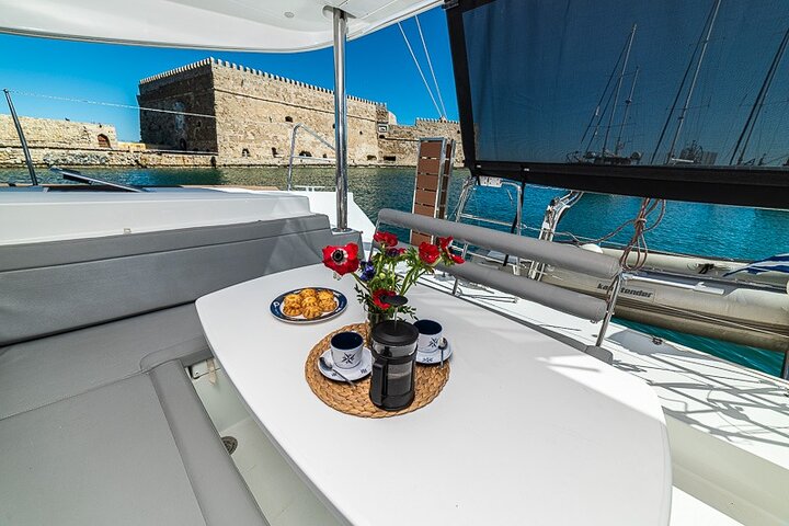 Celebrate a special birthday in the most unforgettable way, with a private sunset cruise in the caldera aboard a luxury catamaran, designed to create a beautiful and festive atmosphere for an unforgettable surprise.
