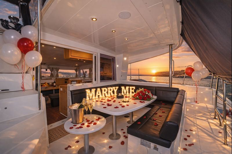 For couples who dream of a truly unforgettable and cinematic proposal, our luxury catamaran offers the perfect setting, allowing a full romantic decoration and a carefully designed atmosphere for this once-in-a-lifetime moment.